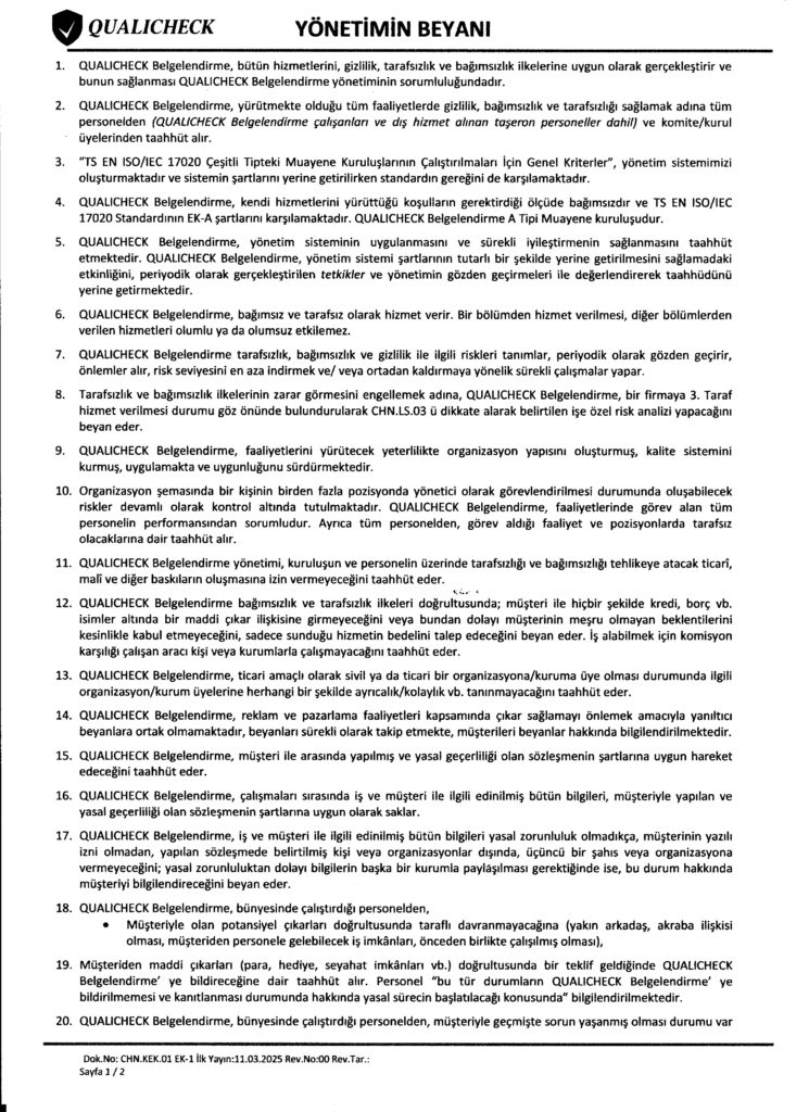 Qualicheck olarak tüm hizmetlerimizde tarafsızlık ilkesine bağlı kalıyoruz. Kararlarımızı çıkar ilişkilerinden uzak, yalnızca doğruluk, dürüstlük ve etik değerler çerçevesinde alıyoruz. Her projede eşitlik ve adil yaklaşım, kurumsal sorumluluğumuzun temelidir.